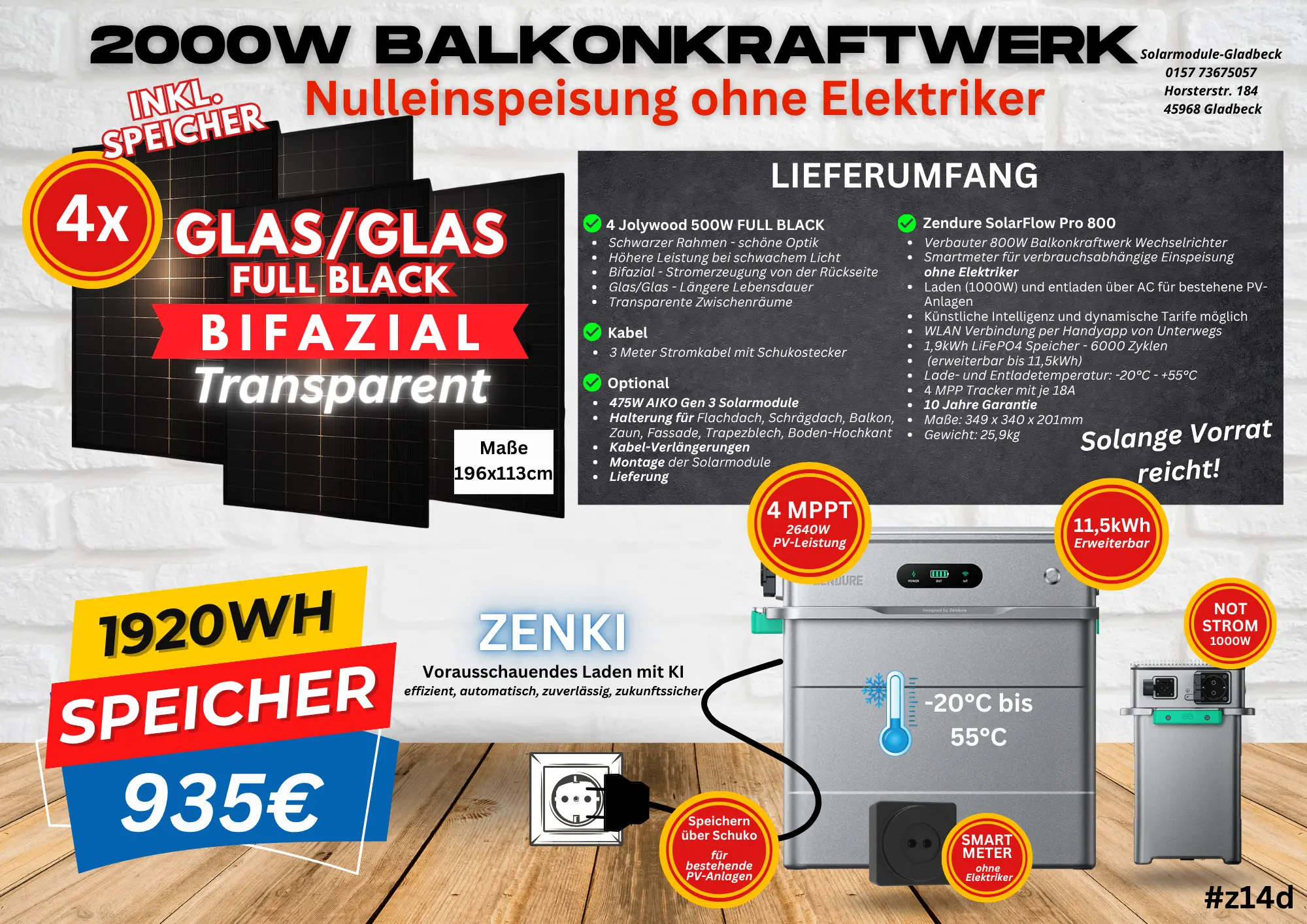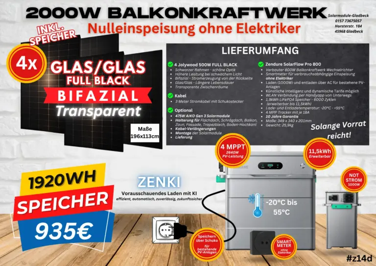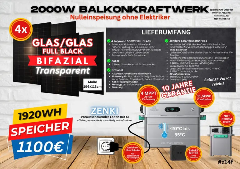 4 Module Balkonkraftwerk mit 1,9kWh Speicher und Notstrom